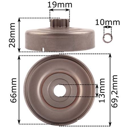 ✅Kompletny zestaw bębna sprzęgła zawiera: bęben 3/8", zębatka - koło pływające 7 zębów, łożysko igiełkowe, zabezpieczenie