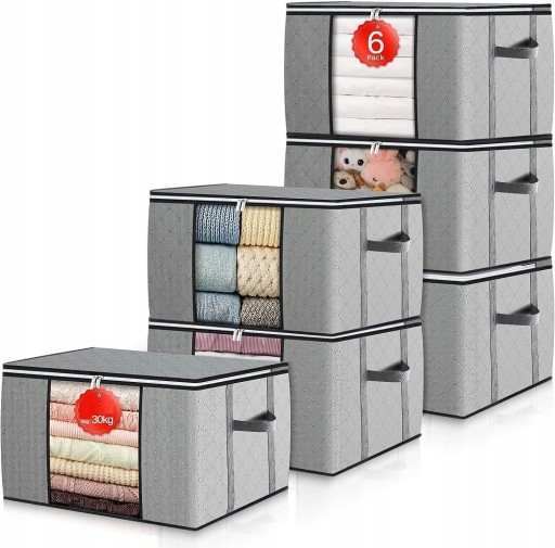 TORBA DO PRZECHOWYWANIA UBRAŃ PUDEŁKA ORGANIZER DO SZAFY POJEMNIKI 84L x6