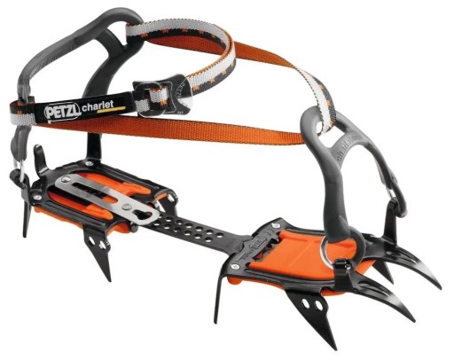 Lekkie, zwarte raki z 10-cioma zębami, przeznaczone do turystyki lodowcowej i na ski tury