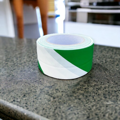 ЛЕНТА ПРЕДУПРЕЖДАЮЩАЯ маркировочная ПВХ Виниловая ЗЕЛЕНАЯ БЕЛАЯ 50мм 33м