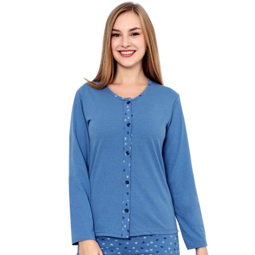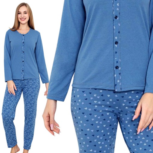 PIŻAMA ROZPINANA BAWEŁNIANA DWUCZĘSCIOWA DAMSKA Z DŁUGIM RĘKAWEM ORAZ DŁUGIMI SPODNIAMI NA GUMCE