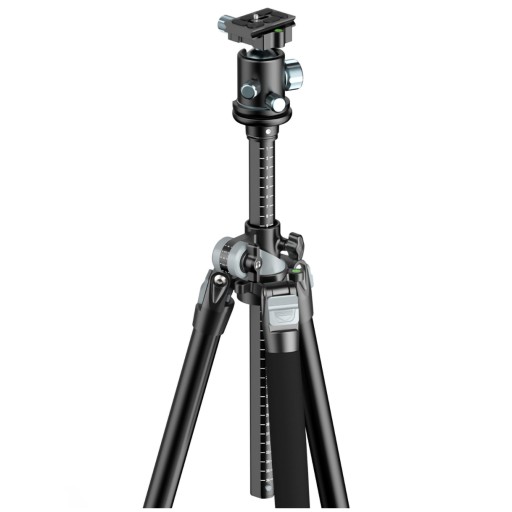 Statyw MT-59 ma kulową głowicę 360 stopni z precyzyjną podziałką. Dzięki niej uzyskasz odpowiedni kąt podczas ustawiania aparatu lub kamery. Jest stworzona do wykonywania ujęć panoramicznych.