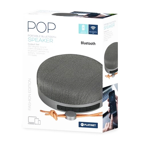 Platinet PMG7 POP to stylowy, poręczny i wydajny głośnik z wygodną przywieszką ułatwiającą transport. Technologia Bluetooth 5.0 zapewnia bezprzewodową transmisję dźwięku wysokiej jakości (HD Sound) ze smartfonów, tabletów, notebooków i innych urządzeń. POCZUJ MUZYKĘ W głośnikach bezprzewodowych najważniejsze jest wnętrze, dlatego model PMG7 POP wyposażyliśmy w 5-watowy głośnik z 360-stopniowym systemem emisji dźwięku. Dzięki temu odtwarzany dźwięk jest głębszy i głośniejszy. Mocny bas dodaje energii Twoim ulubionym kawałkom i pobudzi do tańca każdą imprezę. STYLOWY GADŻET Projektując głośnik PMG7 POP chcieliśmy stworzyć urządzenie stylowe a przede wszystkim – funkcjonalne. Udało nam się to dzięki połączeniu materiałowej obudowy i wysokiej jakości plastiku. ŁATWOŚĆ OBSŁUGI Dzięki dużym, wypukłym przyciskom nie musisz nawet patrzeć na głośnik, aby wygodnie sterować głośnością lub zmieniać utwory. BO NAJWAŻNIEJSZA JEST WYGODA Platinet PMG7 POP został wyposażony w specjalne mocowanie, dzięki któremu z łatwością przyczepisz je do ubrań lub do plecaka. WIĘKSZE MOŻLIWOŚCI Głośnik PMG7 POP poza bezprzewodowym odtwarzaniem muzyki, umożliwia także słuchanie stacji radiowych, dzięki wbudowanemu odbiornikowi FM. SPECYFIKACJA TECHNICZNA Głośnik o mocy 5W Radio FM Bluetooth 5.0 Czytnik kart microSDHC - do odtwarzania muzyki. Zasięg do 10m Wbudowany akumulator 1200mAh / 3,7V Zakres częstotliwości: 150Hz – 20kHz Czułość: >=85dB Zasilanie: USB DC5V/1A Czas ładowania 2 godziny Czas odtwarzania: do 6 godzin Wymiary: 110 x 48mm Waga: 265g