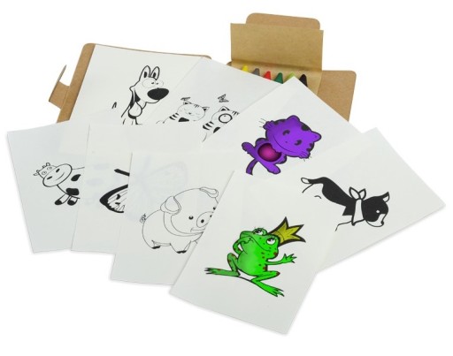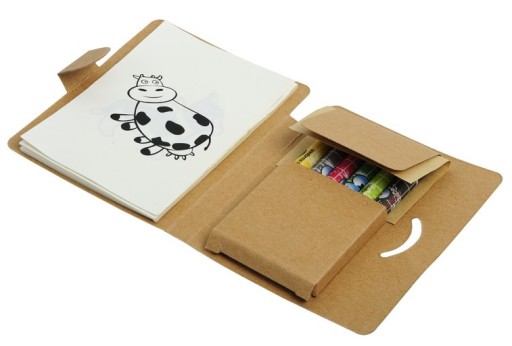 Zestaw do kolorowania składający się z 8 zajmujących kolorowanek, 6 kredek świecowych oraz 25 - kartkowego notesu (gramatura 70g/m2).