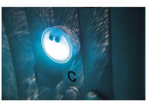 Ponadto produkt wyposażony jest z automatyczny czujnik wyłączania, który wyłącza lampkę po 2 h użytkowania. Lampkę montuje się bezpośrednio w środku basenu Spa.