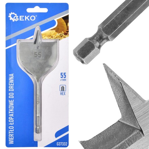 WIERTŁO DO DREWNA FORNIRU WIÓROWYCH HEX 1/4" 55 MM ŁOPATKOWE PIÓRKOWE 152mm