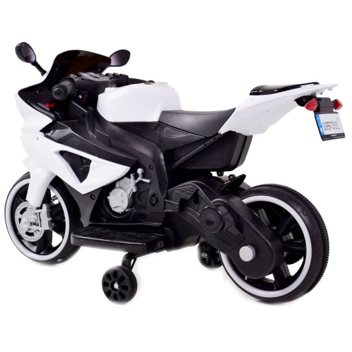 Panel z dźwiękami ( dźwięki odpalania motocykla) z wejściem USB i AUX i oświetlenie pojazdu ( światła oraz świecące koła) umili o urozmaici zabawą.