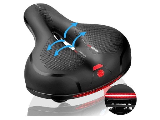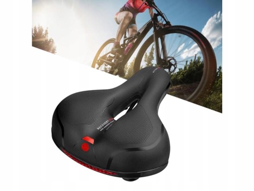 Niezwykle wygodne, żelowe siodełko rowerowe. Doskonałe dla osób odczuwających dyskomfort na standardowych siodełkach w czasie dłuższej jazdy na rowerze. Wyposażone w specjalny, anatomiczny otwór poprawiający wentylację oraz podwójną amortyzację zwiększającą komfort jazdy. Zawieszone na 2 prętach co znacznie zwiększa jego stabilność. Dodatkowy, czerwony odblask w tylnej części siodełka umożliwia rezygnację z klasycznej lampki z tyłu roweru.