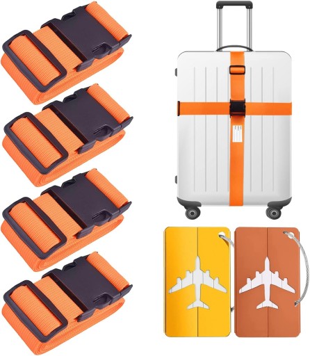 4x РЕМЕНЬ ДЛЯ КРЕПЛЕНИЯ ЧЕМОДАНА, ОРАНЖЕВЫЙ НАБОР