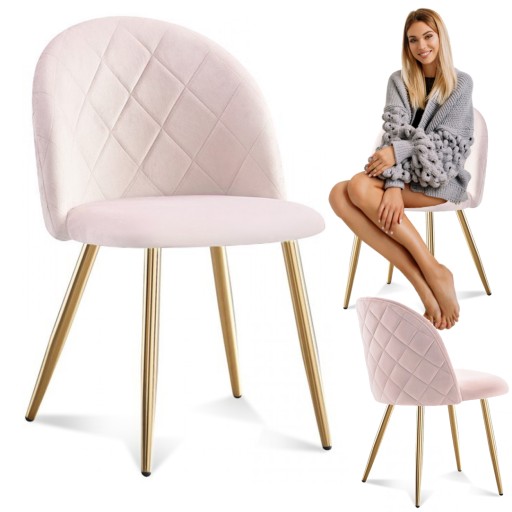 ⭐ Obicie fotela zostało wykonane z miękkiej, jasnoróżowej, welurowej tkaniny tak, aby maksymalnie zwiększyć wygodę siedzenia.
