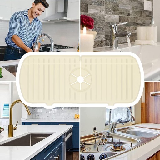 СИЛИКОНОВЫЙ КОВрик ДЛЯ РАКОВИНЫ, СЛИВНИК ПОД ЛЕНТУ, БЕЖЕВЫЙ ЗАЩИТНЫЙ КОВРИК ДЛЯ КУХНИ
