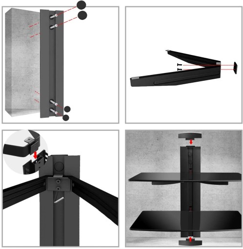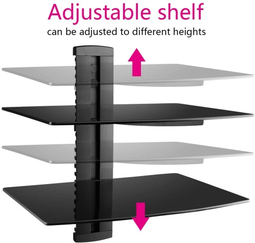 - Kompatybilność Półka do montażu na ścianie jest kompatybilna z drewnianymi i betonowymi ścianami. Regulowana funkcja pływającej półki zapewnia, że Twoje urządzenie jest zamontowane na idealnej wysokości.
