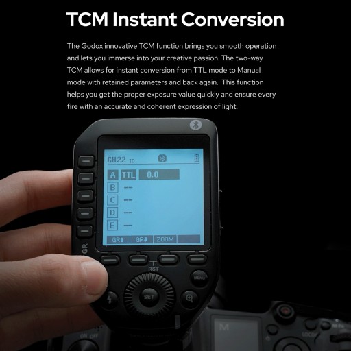 【Natychmiastowa konwersja TCM】Innowacyjna funkcja Godox TCM zapewnia płynną pracę i pozwala zanurzyć się w twórczą pasję. Dwukierunkowy TCM pozwala na natychmiastową konwersję z trybu TTL na tryb ręczny z zachowaniem parametrów iz powrotem. Ta funkcja pomaga szybko uzyskać odpowiednią wartość ekspozycji i zapewnić każdemu pożarowi dokładną i spójną ekspresję światła.