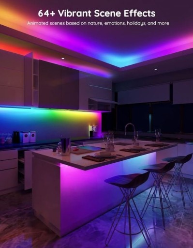Dzięki aplikacji Govee Home uzyskasz dostęp do wielu ekscytujących funkcji oświetlenia, w tym ponad 64 wstępnie ustawionych trybów scen i funkcji trybu muzycznego. Dostępnych jest ponad 16 milionów opcji kolorystycznych odpowiednich na każdą okazję.