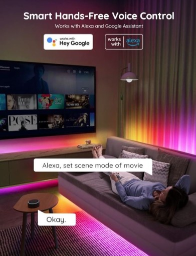 Taśmy LED Govee RGBIC Pro są kompatybilne z Alexa i Google Assistant, zapewniając płynną kontrolę głosową.