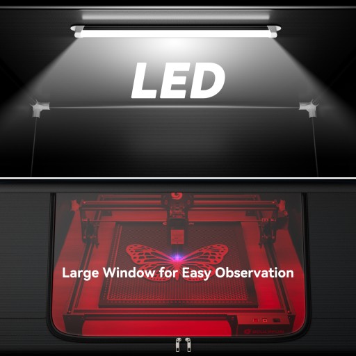 3. Efektywny układ wydechowy i konstrukcja typu „wszystko w jednym”: Wentylator może skutecznie odprowadzać dym przez kanał (o średnicy około 7,5 cm i długości 150 cm), aby utrzymać świeże powietrze w pomieszczeniu. Zapinane na zamek okienko wykonane jest z PVC, półprzezroczysta konstrukcja, a wbudowana świetlówka LED sprawia, że wnętrze jest przejrzyste, co ułatwia obserwację postępu grawerowania. Uwaga: Aby obserwować postęp grawerowania, należy nosić okulary blokujące niebieskie światło