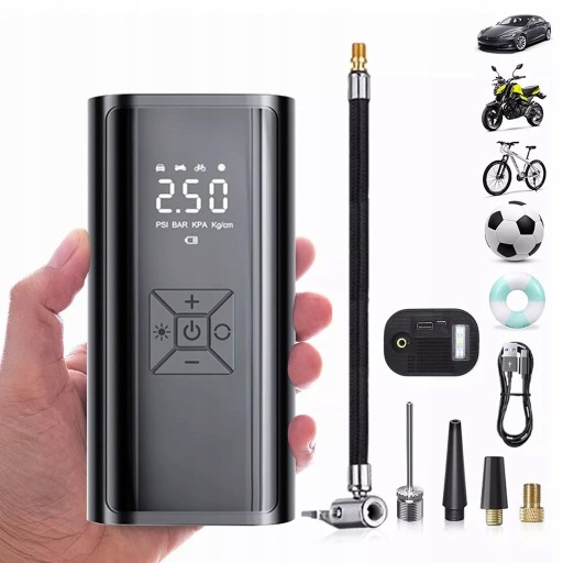 - Ta elektryczna pompka powietrza obsługuje 3 jednostki napięcia (bar, Kpa), ma cztery tryby pracy i obsługuje napompowane piłki, opony rowerowe, opony motocyklowe i opony samochodowe.
