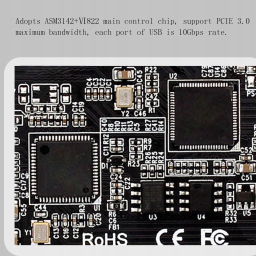 2. Wysoka prędkość: ta karta rozszerzeń PCIE USB3.2 przyjmuje główny układ sterujący ASM3142 Ⅵ822, obsługuje maksymalną przepustowość PCIE 3.0, każdy port USB ma szybkość 10 gb/s.