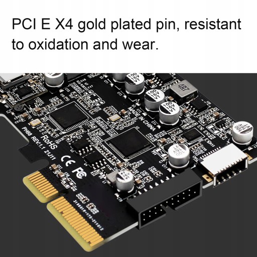 4. Pozłacany styk: Ta karta PCIE na USB3.2 GEN2 posiada pozłacany styk PCI E X4, który jest odporny na utlenianie i zużycie.