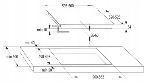 - Szerokość wnęki do montażu min.: 560 mm