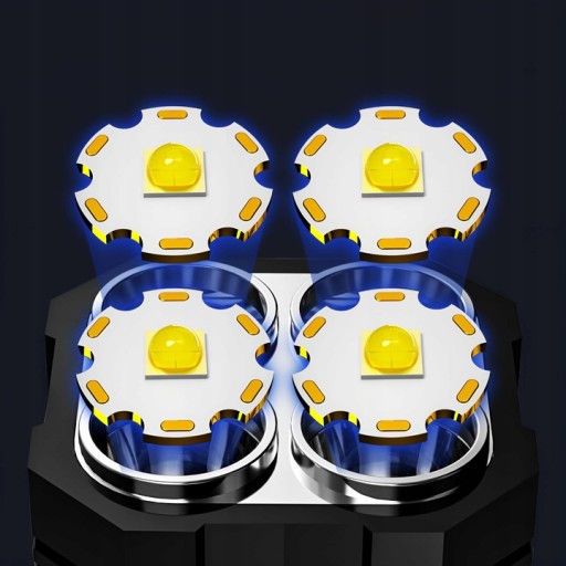 Latarka posiada cztery bardzo mocne diody LED dzięki czemu idealnie sprawdzi się nawet w najtrudniejszych warunkach.