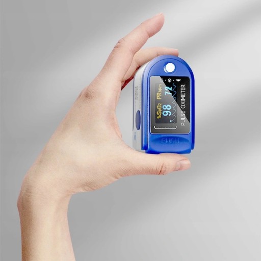 Pulsoksymetr po nałożeniu na palec w sposób bardzo szybki pokazuje wynik :