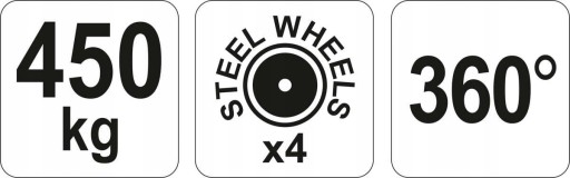 Stojak do obsługi silnika o nośności do 450kg. Posiada 4 metalowe koła - w tym dwa skrętne ułatwiające manewrowanie. Głowica obrotowa z czterema regulowanymi łapami umożliwia bezpieczne pozycjonowanie silnika w zakresie 360 stopni.