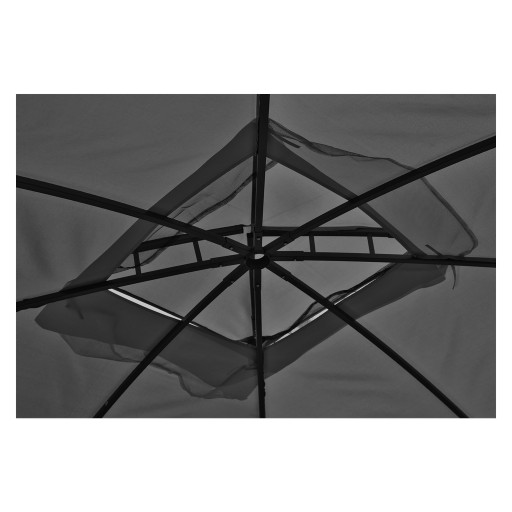Cztery ściany i dach wykonano z wytrzymałego materiału poliestrowego odpornego na działanie promieniowania UV (UV 30 ) i chroniącego przed lekkim deszczem oraz słabszym wiatrem. Moskitiera (nr art. 012-389) do kupienia osobno.