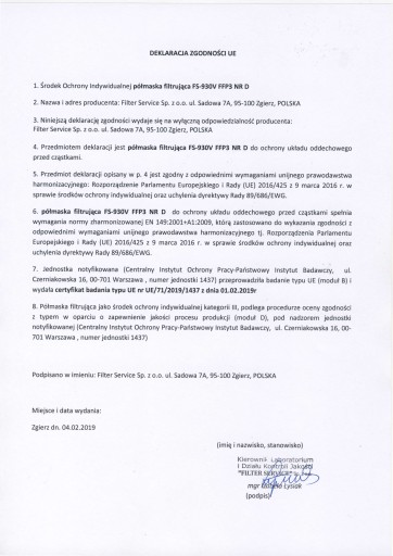Półmaska filtrująca FS-930V FFP3 NR D zapas magazynowy po zalecanym terminie użytkowania ( 07/2023)