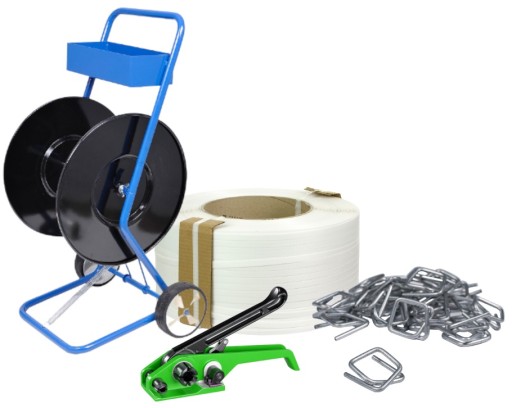 Wytrzymałość ładunku obliczono dla 4 spięć taśmą. Zestaw pakowy szeroko wykorzystywany w zakładach tartacznych, stolarskich, budowlanych, betoniarskich, gospodarstwach rolnych, sadowniczych i ogrodniczych. Wszędzie tam gdzie istnieje konieczność wiązania materiałów, które wymagają stabilizacji w trakcie ich transportu lub składowania.