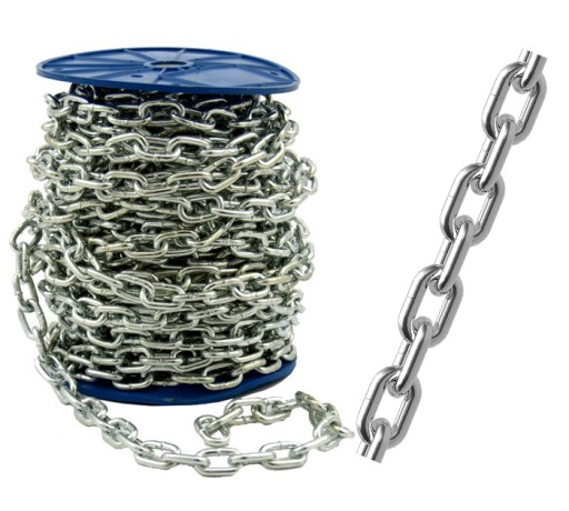 W celu ochrony przed korozją, jak również wydłużeniem ich żywotności zostały ocynkowane. Łańcuch wykonany zgodnie z normą DIN 5685 C, długoogniwkowy, zgrzewany bocznie. Doskonale nadaje się do budownictwa, przemysłu, rolnictwa, ogrodnictwa i leśnictwa.Tolerancja parametrów +/-10%.