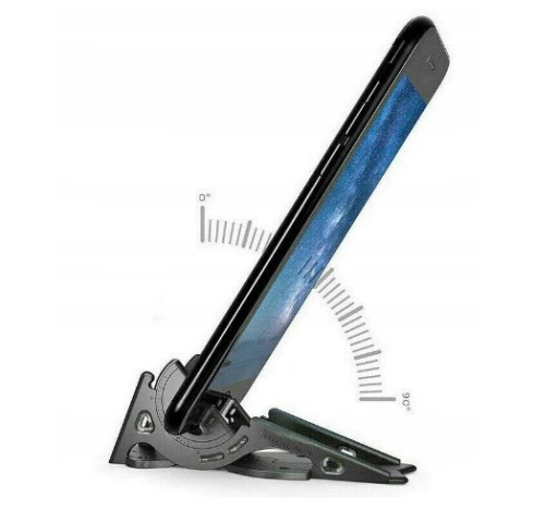 Uniwersalna, składana podstawka na telefon lub tablet. Poprawia komfort korzystania z urządzeń mobilnych, pozwala dopasować położenie telefonu do swoich potrzeb. Stojak jest wykonany z wysokiej jakości materiałów, które łączą w sobie funkcjonalność i elegancki wygląd.
