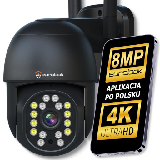 ➡️ZEWNĘTRZNA KAMERA IP WIFI OBROTOWA CZARNA 8MPx 4K 3840x2160 px Ultra HD
