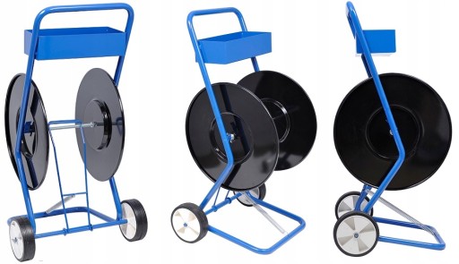 Uniwersalny wózek do odwijania taśmy. Zaletą wózka są trwałe, wykonane z metalu i pełne talerze utrzymujące taśmę. Zachowują swój kształt nawet po długotrwałym użytkowaniu. Taśma jest stabilna, nie zawija się i nie plącze. Odwijak przeznaczony jest do pracy z taśmą o średnicy szpuli 200mm. Stalowa rama o grubości 25mm pozwala zachować stabilność całego urządzenia. Wózek posiada wytrzymałe koła gumowe o średnicy 125mm dzięki czemu z łatwością można go przemieszczać w terenie. Podręczna skrzynka na narzędzia umożliwia przechowywanie napinacza oraz zapinek.