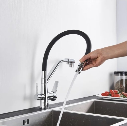 ✨Trójdrożna Bateria kuchenna Penelope Black z możliwością podłączenia filtra i elastyczną wylewką ✨