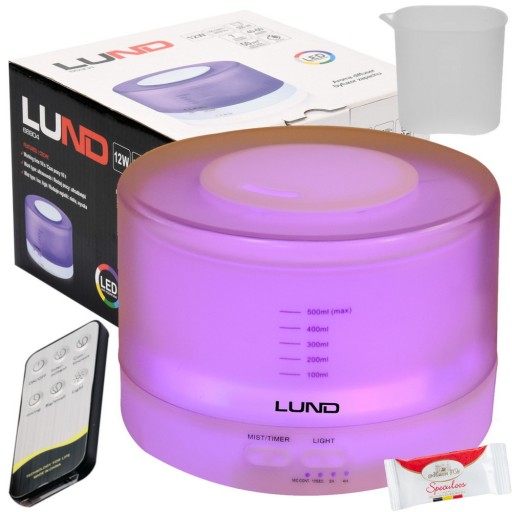 Ultradźwiękowy dyfuzor zapachu z funkcją aromaterapii, który może posłużyć także jako nawilżacz powietrza. Atutem urządzenia jest możliwość ustawienia czasu pracy, koloru światła, trybu pracy oraz rodzaju mgiełki. Pojemność 500ml zapewni aż do 10h ciągłej pracy