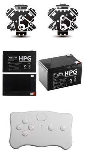 - 2 duże akumulatory (AGM) o napięciu 12V i pojemności 7Ah, żywotność około 300 ładowań.