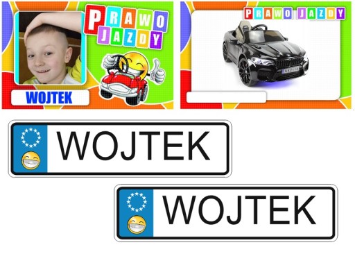 Prosimy o wpisywanie w komentarzach do zamówienia imie Dziecka (do tablic imiennych), napis "prawo jazdy" (jeżeli mamy dołączyć prawo jazdy).
