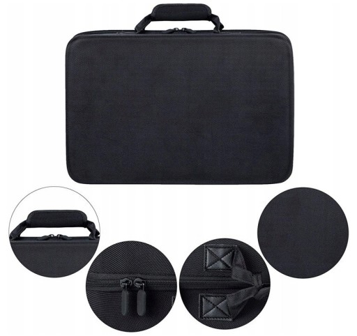 - Niezwykle pojemna — pomieści 2 pady, słuchawki, stację ładującą na 2 pady, 8 płyt z grami i przewody.
