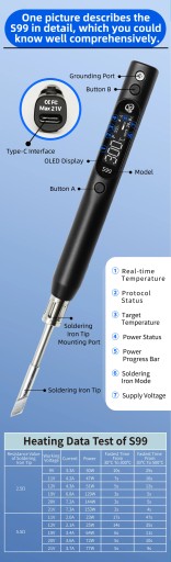- Kompatybilny z grotami lutowniczymi serii C245, zakres regulacji temperatury 50 ℃ - 500 ℃ / 122 ℉ - 932 ℉.