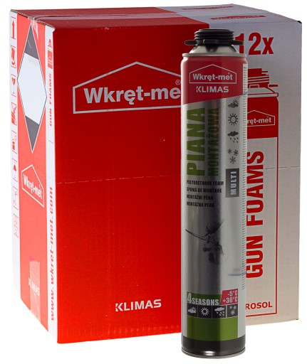 Piana poliuretanowa zimowa -5°C montażowa pistoletowa niskoprężna PMPWS 750 ml Wkręt-met 10 SZT + pistolet