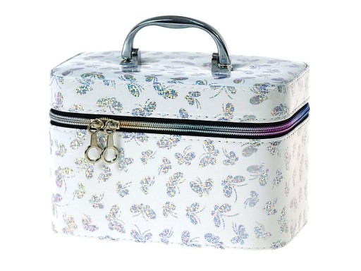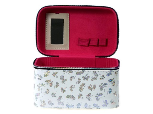 Kuferek, wykonany z największą starannością, posiada jedną pojemną komorę, wyłożona tkaniną. Zamykany na suwak zakończony ozdobnym uchwytem. W górnej części po otwarciu znajduje się lusterko. Idealny do przechowywania pierwszych kosmetyków dziewczynek. Sprawdzi się też jako schowek na przybory szkolne albo różne drobiazgi. Dzięki wygodnej, metalowej rączce Twoja pociecha będzie mogła zabrać swoją kosmetyczkę gdzie tylko zechce.