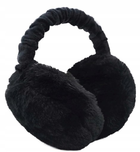 CZARNE NAUSZNIKI PLUSZOWE SKŁADANE Z WYSUWANYM PAŁĄKIEM