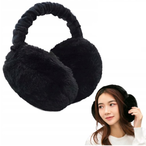 CZARNE NAUSZNIKI ZIMOWE DAMSKIE SKŁADANE REGULOWANE UNIWERSALNE OPASKA