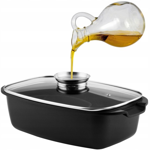 ❤️ Naczynie wyposażone jest także w szklaną pokrywę z aromatyzerem oraz odpowietrznikiem, dzięki której można uzupełniać w trakcie przyrządzania potraw np. wodę czy bulionu.