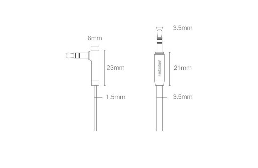 ⭐Najważniejsze informacje dotyczące płaskiego kabla kątowego mini jack 3,5mm AUX UGREEN 0,5m: