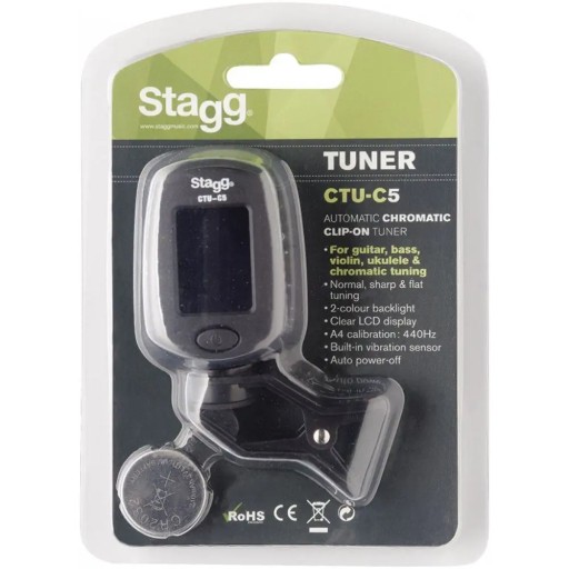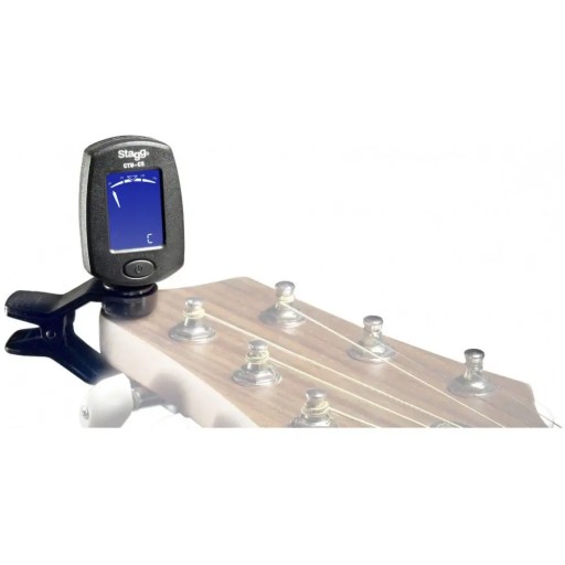 To jest automatyczne tłumaczenie wygenerowane przez software: Clip-on chromatyczny tuner na gitarę, bas, skrzypce i ukulele. Posiada normalne, ostre i płaskie strojenie. 2-kolorowy wyświetlacz podświetlenia. Automatyczny wyłącznik. Wbudowany czujnik wibracji. Dołączona bateria 3 V. Kolor: czarny