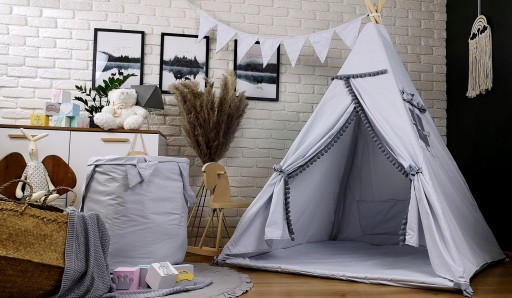 Namioty teepee można skompletować z innymi produktami naszej marki takimi jak pościel,kosz na zabawki i girlandy dzięki którym stworzysz oryginalną aranżację pokoju dziecka.