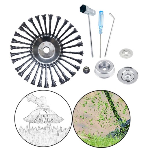 [Szerokie zastosowanie] to skręcone koło obrotowe jest idealne do przycinania ciasnych i utwardzonych narożników, usuwania uporczywych chwastów na piasku lub żwirze, usuwania rdzy i gratowania oraz polerowania.
