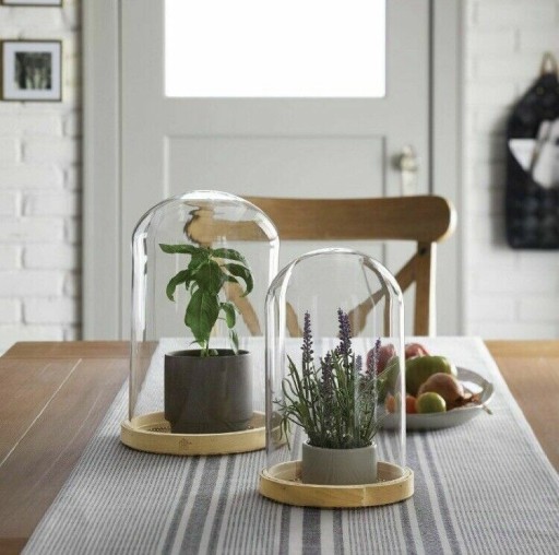 Ładny, szklany klosz do umieszczania dekoracji, takich jak suszone kwiaty, rośliny lub ozdobne figurki. Zapewni fantastyczną ekspozycję wszelkim ozdobom w Twoim domu.